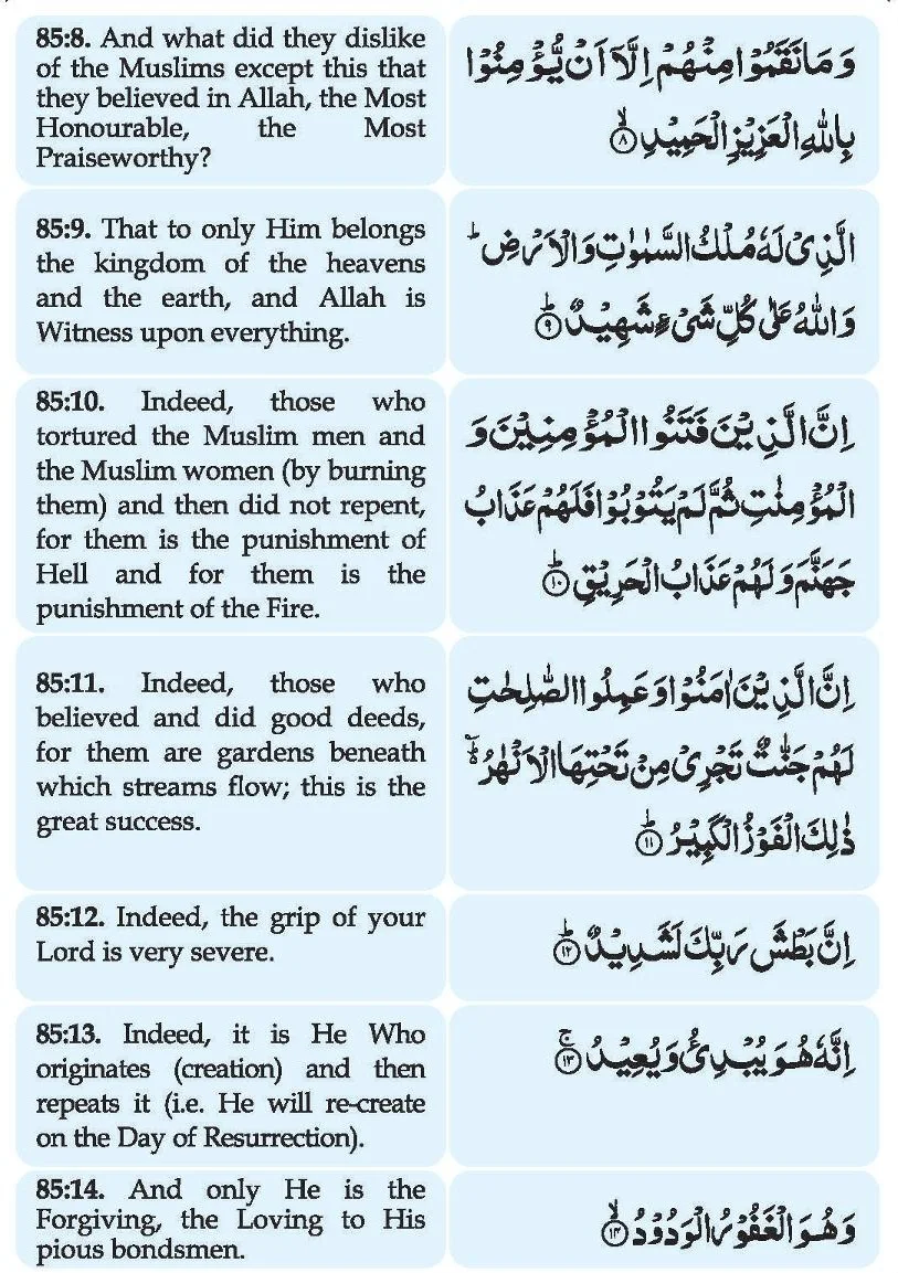 10. Innal Lazeena Fatanul Mu’mineena Wal Mu’minaati Summa Lam Yatooboo Falahum ‘Azaabu Jahannama Wa Lahum ‘Azaabul Hareeq