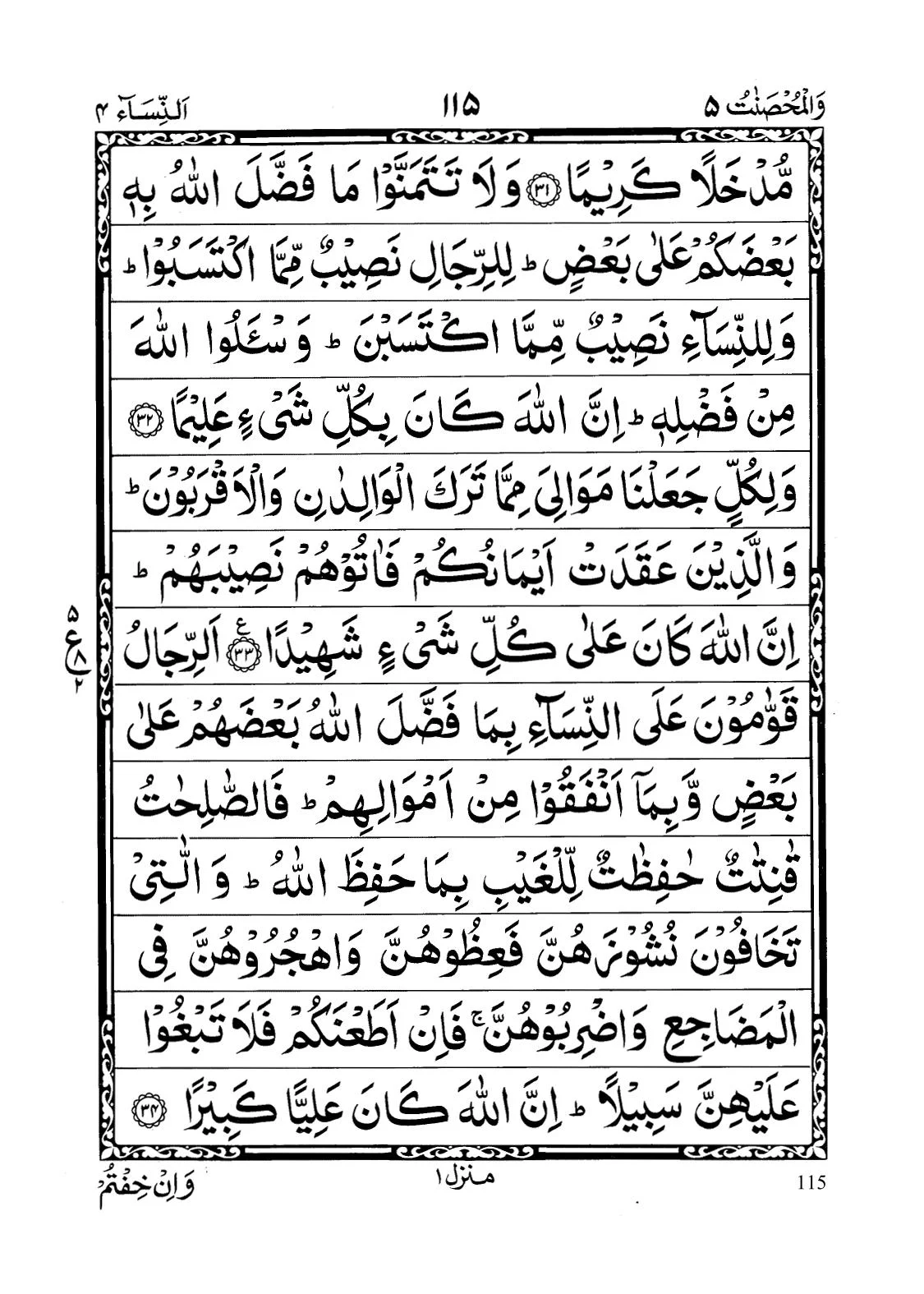 33. Wa Likullin Ja’alnaa Ma Waaliya Mimmaa Tarakal Waalidaani Wal Aqraboon; Wallazeena ‘Aqadat Aimaanukum Fa Aatoohum Naseebahum; Innal Laaha Kaana ‘Alaa Kulli Shai’in Shaheedaa (Section 5)