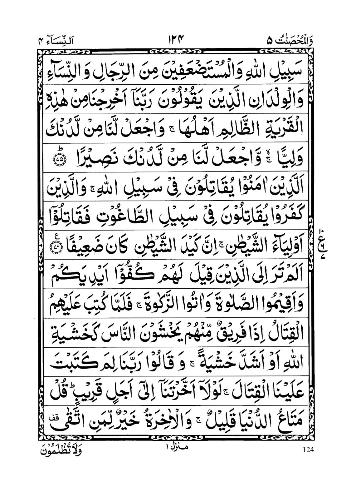 77. Alam Tara Ilal Lazeena Qeela Lahum Kuffooo Aidiyakum Wa Aqeemus Salaata Wa Aaatuz Zakaata Falammaa Kutiba ‘Alaihimul Qitaalu Izaa Fareequm Minhum Yakhshaw Nan Naasa Kakhashyatil Laahi Aw Ashadda Khashyah; Wa Qaaloo Rabbanaa Lima Katabta ‘Alainal Qitaala Law Laaa Akhkhartanaa Ilaaa Ajalin Qareeb; Qul Mataa’ud Dunyaa Qaleelunw Wal Aakhiratu Khairul Limanit Taqaa Wa Laa Tuzlamoona Fateelaa