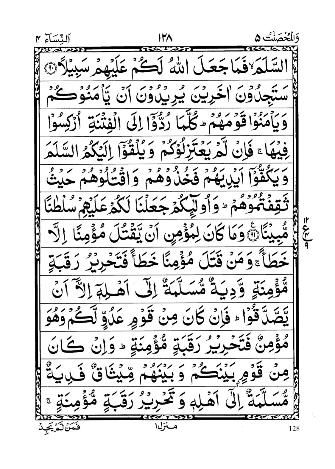94. Yaaa Aiyuhal Lazeena Aamanoo Izaa Darabtum Fee Sabeelil Laahi Fatabaiyanoo Wa Laa Taqooloo Liman Alqaaa Ilaikumus Salaama Lasta Mu’minan Tabtaghoona ‘Aradal Hayaatid Dunyaa Fa’indal Laahi Maghaanimu Kaseerah; Kazaalika Kuntum Min Qablu Famannnal Laahu ‘Alaikum Fatabaiyanoo; Innallaaha Kaana Bimaa Ta’maloona Khabeeraa