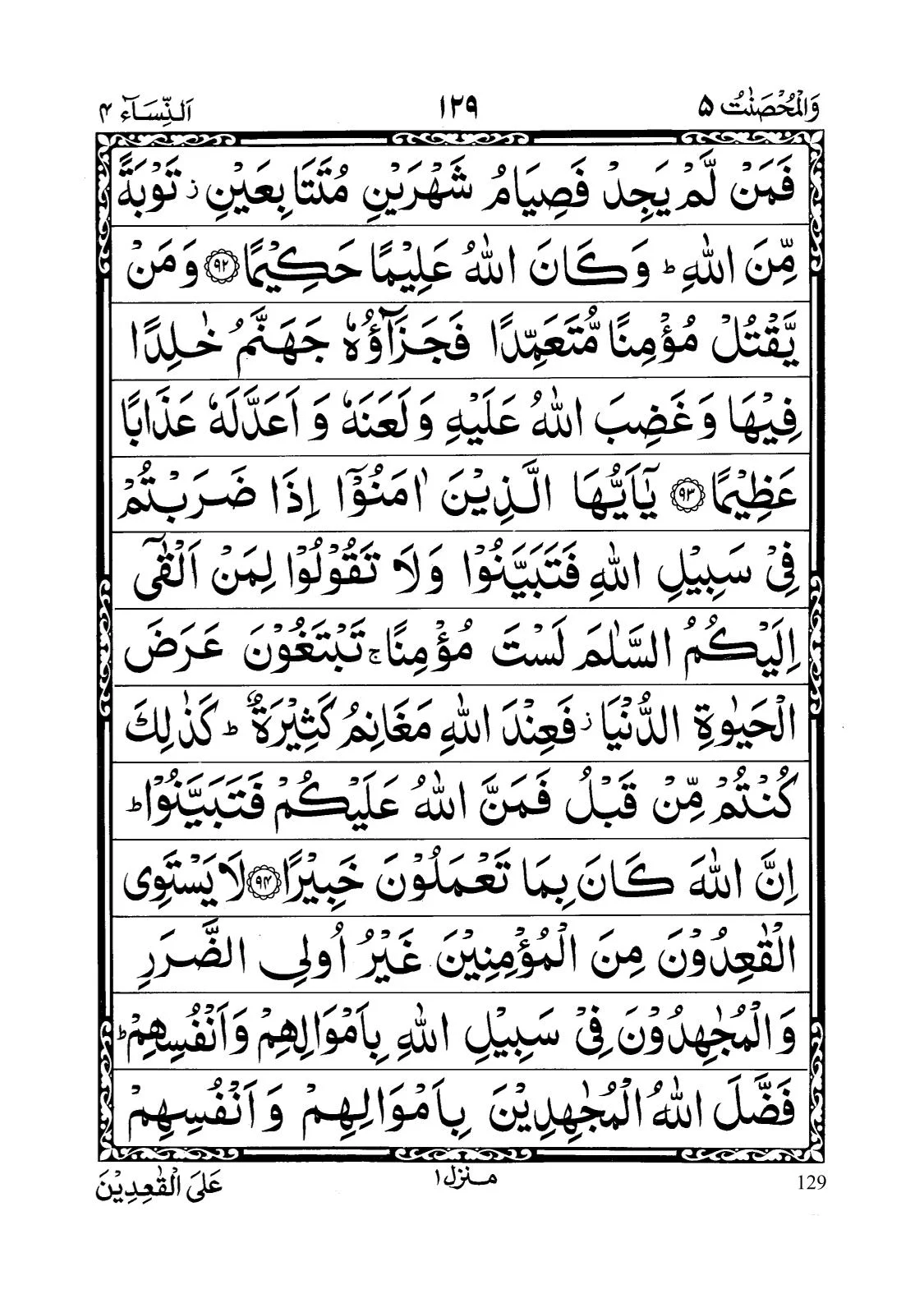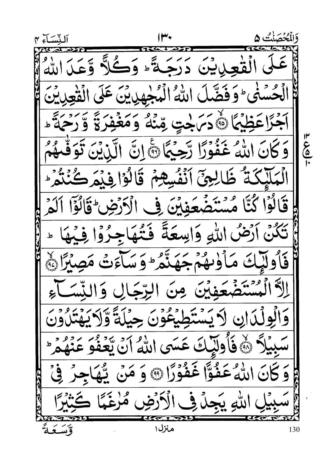 95. Laa Yastawil Qaa’idoona Minal Mu’mineena Ghairu Uliddarari Walmujaahidoona Fee Sabeelil Laahi Bi Amwaalihim Wa Anfusihim; Faddalal Laahul Mujaahideena Bi Amwaalihim Wa Anfusihim ‘Alalqaa’ideena Darajah; Wa Kullanw Wa’adal Laahul Husnaa; Wa Faddalal Laahul Mujaahideena ‘Alal Qaa’ideena Ajran ‘Azeemaa