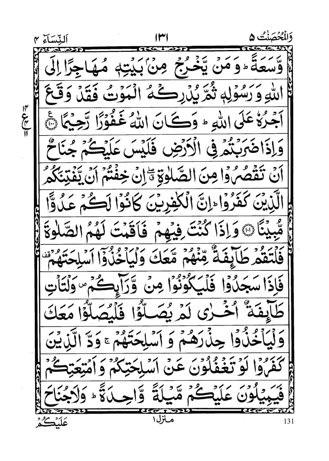 101. Wa Izaa Darabtum Fil Ardi Falaisa ‘Alaikum Junaahun An Taqsuroo Minas Salaati In Khiftum Ai Yaftinakumul Lazeena Kafarooo; Innal Kaafireena Kaanoo Lakum Aduwwam Mubeenaa