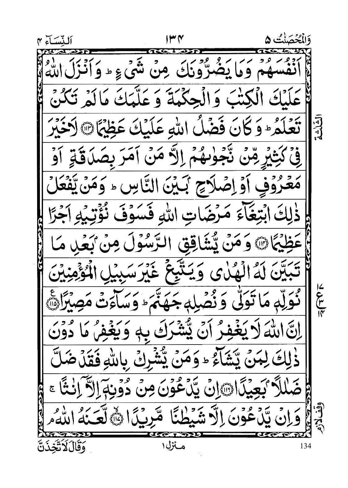 115. Wa Mai Yushaaqiqir Rasoola Mim Ba’di Maa Tabaiyana Lahul Hudaa Wa Yattabi’ Ghaira Sabeelil Mu’mineena Nuwallihee Ma Tawallaa Wa Nuslihee Jahannama Wa Saaa’at Maseeraa (Section 17)