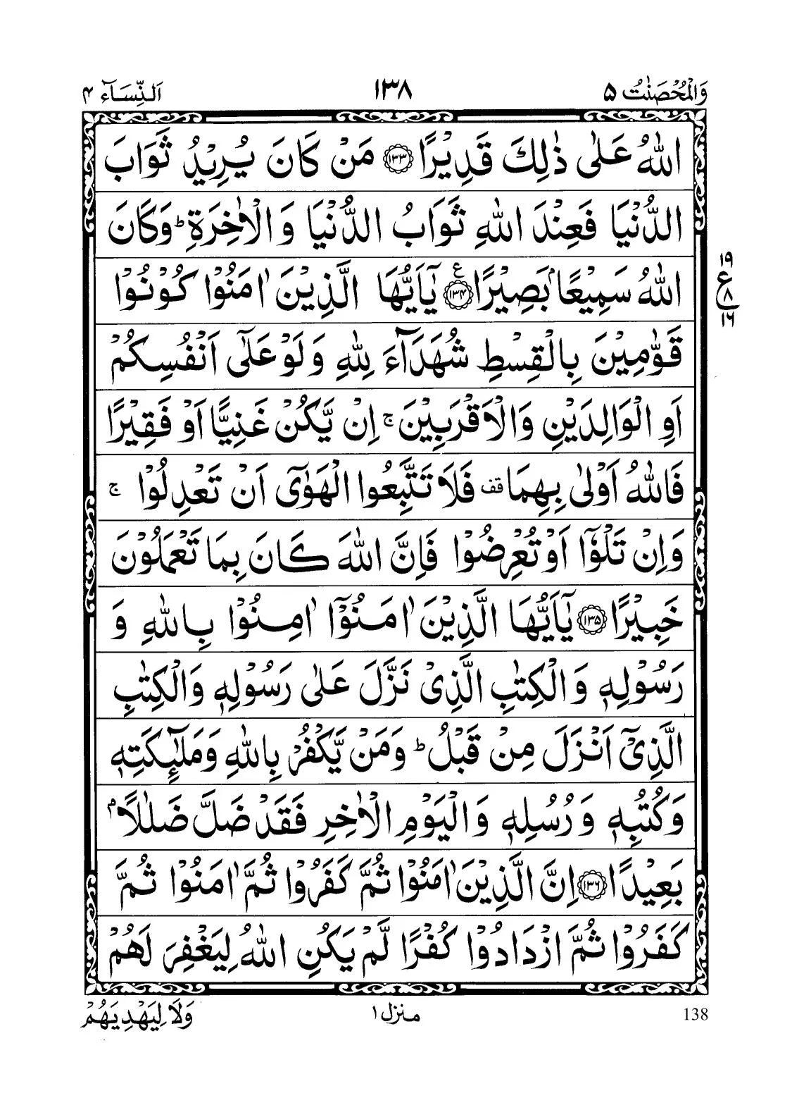 134. Man Kaana Yureedu Sawaabad Dunyaa Fa’indallaahi Sawaabud Dunyaa Wal Aakhirah; Wa Kaanal Laahu Samee’am Baseeraa (Section 19)